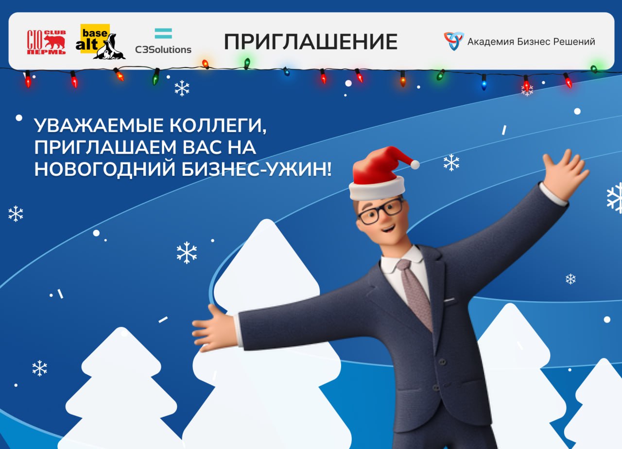 Совет директоров по И Т Пермского края с радостью приглашает вас на итоговый бизнес-ужин на тему «Вечер IT-достижений», который состоится 19 декабря в 19:00. Место встречи: г. Пермь, ул. Мира, 45Б, зал «Лондон» в отеле Four Elements Perm.